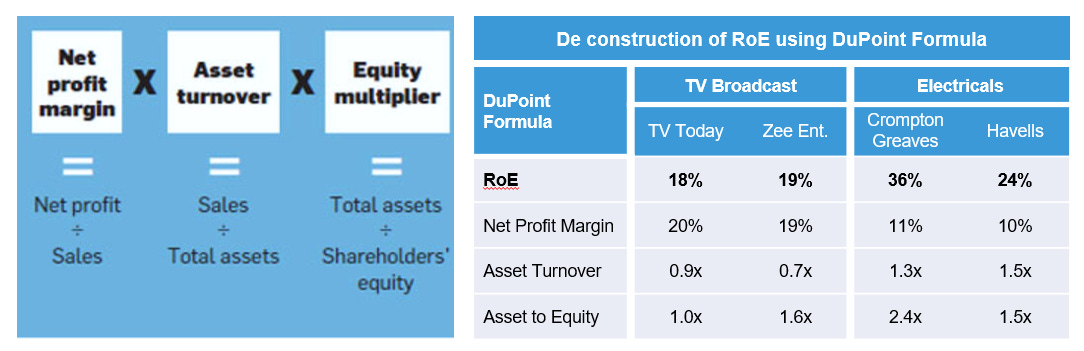 Higher RoEs of Zee and Crompton Greaves don’t give us comfort because their higher RoEs (compared to TV Today & Havells) are due to higher leverage taken on the balance sheet.